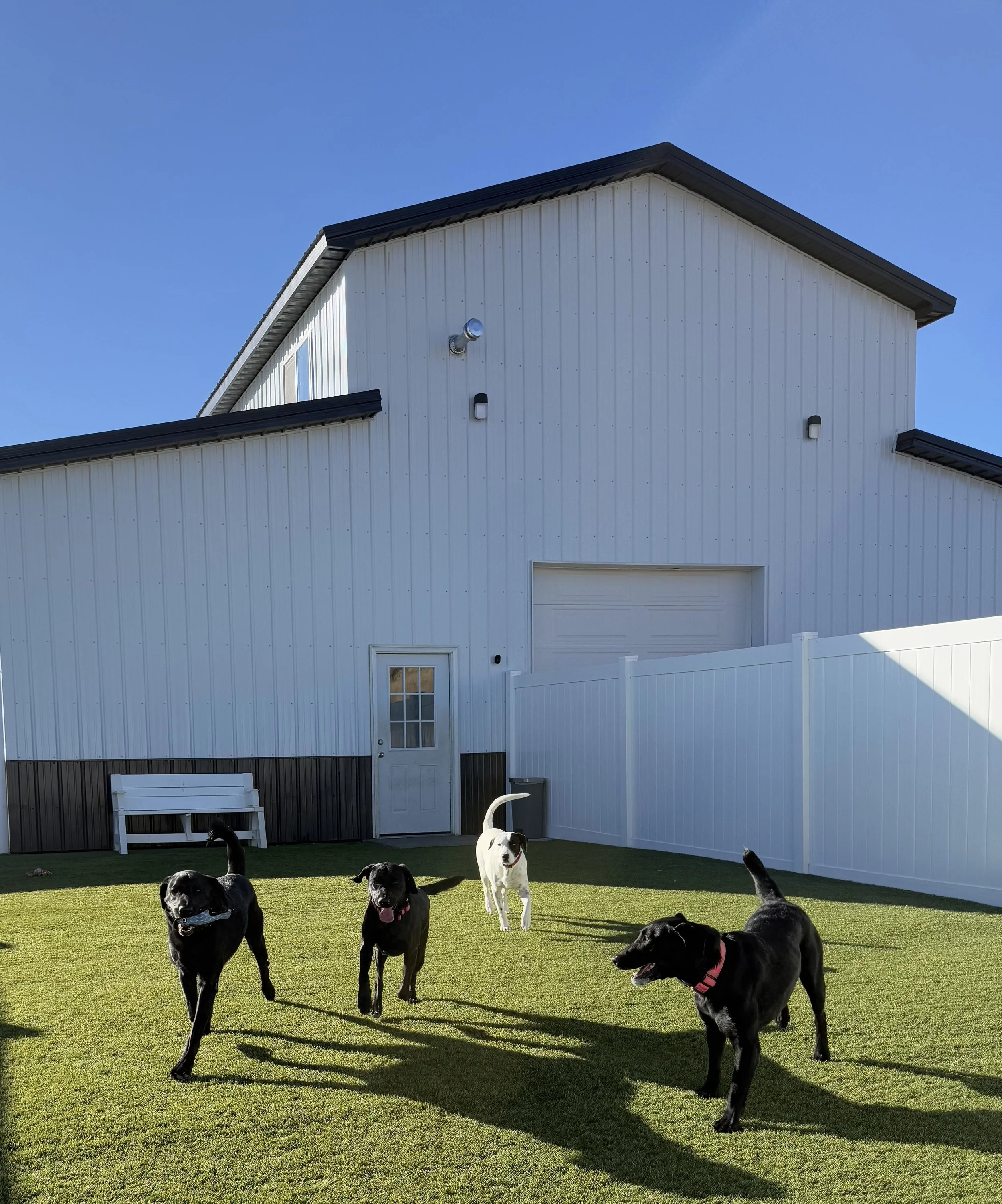 While the property is over 11 acres, pups will be in a fenced play area during their stay. Your dog will have plenty of opportunity to socialize, explore, and play.